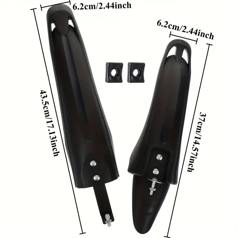 This 2-piece mudguard set protects you and your bike from splashes, dirt, and dust on wet or muddy roads. Designed for universal fit, the front and rear fenders are lightweight, durable, and easy to install on most bicycles, including mountain bikes, road bikes, and commuters.