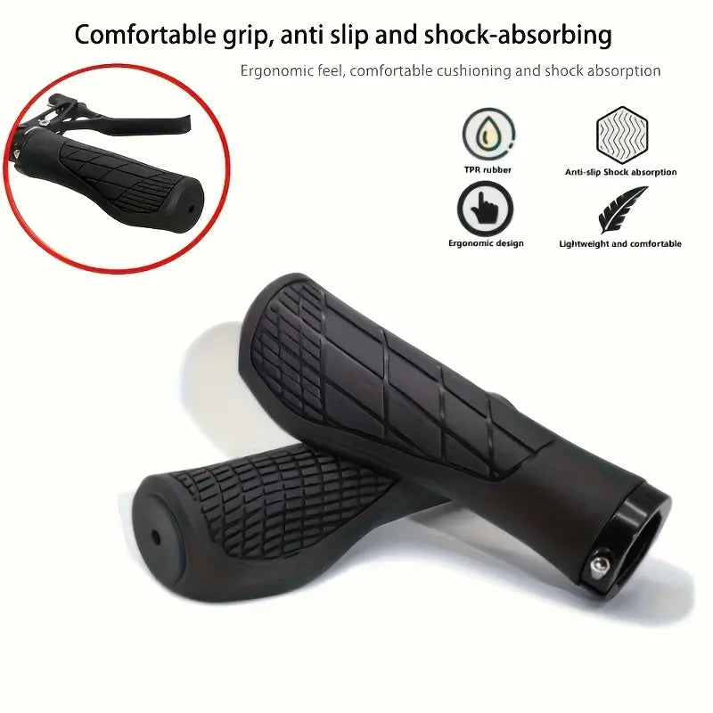 Professional Mountain Bike Handlebar Grips – Double Lock Security, Non-Slip Shock-Absorbing Rubber, Fits MTB, BMX, Cruiser & Folding Bikes