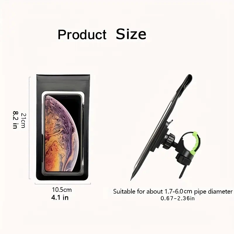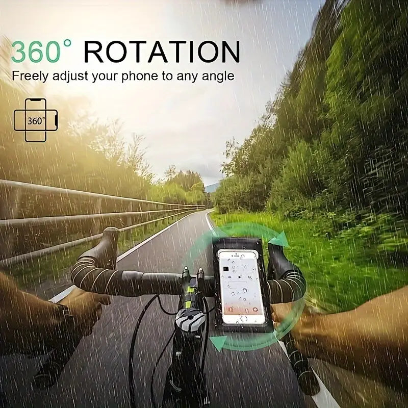 This waterproof bike phone mount bag keeps your smartphone secure and accessible on every ride. With 360° rotation, a rainproof pouch, and full touchscreen/Face ID access, it’s perfect for navigation, music, and calls. Universal handlebar compatibility ensures a stable fit for bikes, motorcycles, and scooters.