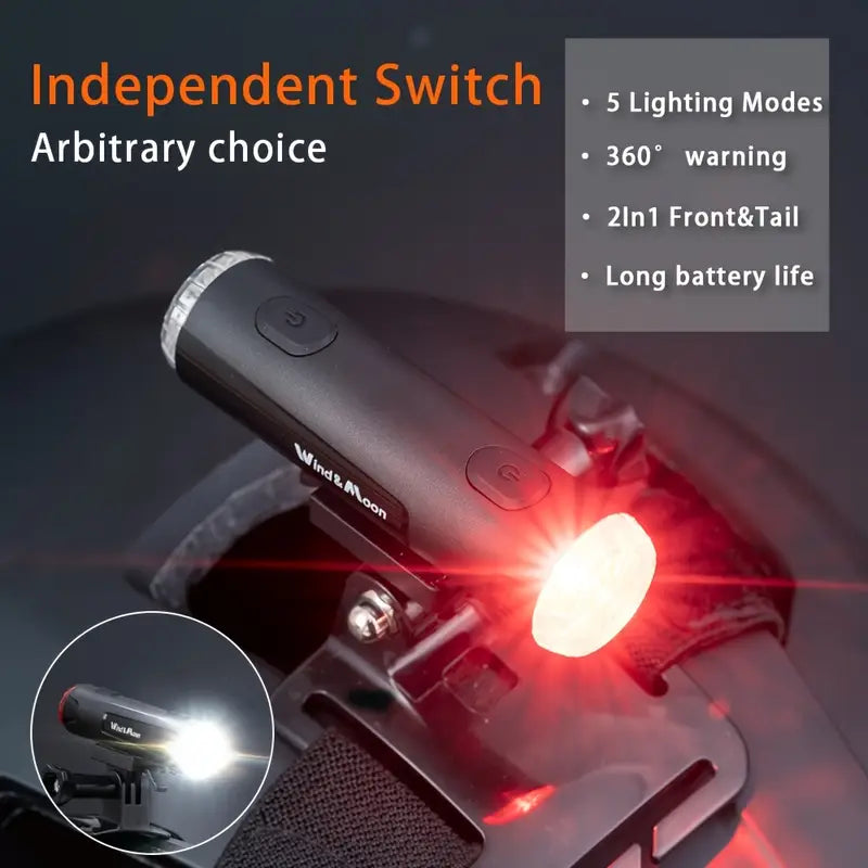 The Wind & Moon 2-in-1 helmet light delivers 200 lumens of brightness with a 360° visibility design to keep you seen in all directions. USB rechargeable with a long-lasting 18650 lithium battery, it provides up to 10 hours of runtime. Built with an ABS frame mount and all-weather protection, it’s perfect for daily commutes, night rides, and outdoor adventures.